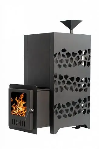 Дровяная банная печь "Камчатка" разработана на основании изучения и улучшения отечественных и зарубежных аналогов, собственного опыта производителя, а также с учетом рекомендаций и пожеланий многочисленных знатоков и ценителей русской бани. В конструкции печи реализована эффективная система теплообмена, существенно ускоряющего нагревание воздуха в парильном и смежных помещениях за счет образуемого им мощного кругового конвекционного потока. Глубокая и емкая каменка каменка печи является мощным парагенератором. Большое количество качественно нагретых камней обеспечивает стабильность температуры в парильном помещении. Печь выполнена из конструкционной стали марки Ст.3 СП 5 толщиной 3 мм.