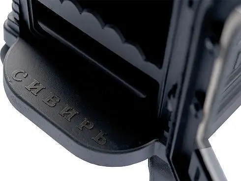Помимо этого, дверка чугунной печи-камина «Сибирь-6», оснащена термостойким стеклом, что позволяет контролировать процесс горения, не открывая саму дверку. Плотность сочленения между чугунным основанием топочной дверки и термостойким стеклом обеспечивает термостойкий шнур, который предназначен для ее герметичного запирания. Это в свою очередь, исключает возможность проникновения несанкционированного воздуха в промежутках между дверкой и передней стенкой печи-камина «Сибирь-6».