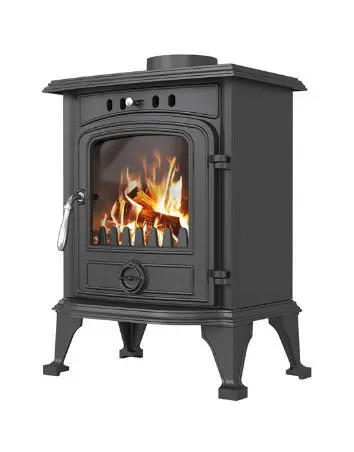 Над дверцей печи-камина расположена система чистое стекло, которая помогает оставаться стеклу чистым. В нижней части дверцы расположена ручка для регулировки подачи воздуха в колосниковую зону.
